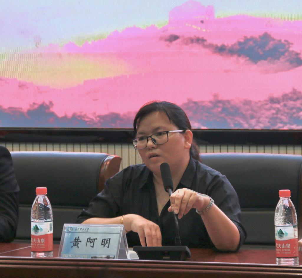 会议伊始,全体成员齐唱团歌。随后黄阿明做会议发言,她首先感谢了第十二届全体学生干部为学院做出的贡献。她认为学生干部要做好老师和同学的桥梁作用,多和老师沟通;从小事做起,扎实地做事;有正确的价值观,站在他人的角度思考这三点要求,有了新鲜血液的加入,她相信土木学院会越来越好。