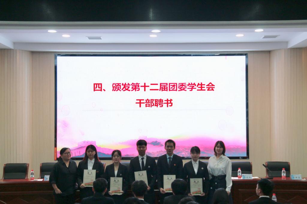 接着,十二届学生会主席张福瑜作工作总结汇报,回顾了过去一年的团学工作取得的优秀成绩,代表全体十二届学生会干部向下一届提出了在学习工作上坚持创新等建议和美好的期望,希望大家秉承“不忘初心、牢记使命”的信念。黄阿明和綦丽给第十二届团委学生会干部颁发聘书。第十三届团委学生会主席团发表了述职报告,介绍了各自的职责和管理部门,表明了今后的工作目标和做好学生工作的决心,各部门部长也发言介绍了各自部门职责和工作计划。
