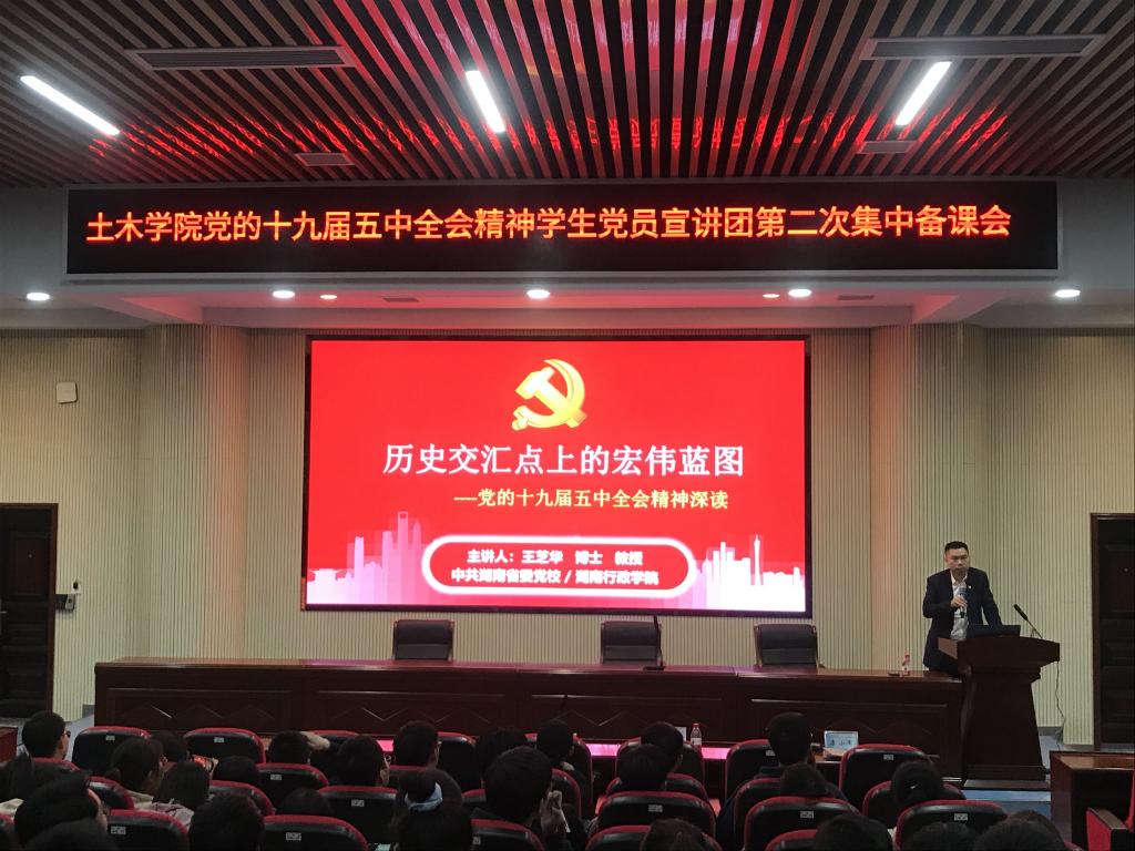 近日来,437必赢会员中心土木工程学院广大青年学生通过网络、电视、报纸、广播等各种形式认真学习全会精神,积极关注大会动态,就关心的热点问题进行热烈讨论。学院各学生党支部组织专题学习会,认真学习全会精神。院党委书记丁丹面向学院全体党员和入党积极分子进行了宣讲。在学院党委的精心部署安排下,学院在全校率先组建党的十九届五中全会精神学生党员宣讲团,组织开展集中备课,预计通过“三进”(进课堂、进宿舍、进实验室)的形式,实现全院学生的全覆盖。大家纷纷表示,会议审议通过的《建议》充分体现时代新变化,符合实践新要求,反映人民新期待,是开启全面建设社会主义现代化国家新征程,向第二个百年奋斗目标进军的纲领性文件,是今后5年乃至更长时期我国经济社会发展的行动指南,青年学生应该找准自己的发展定位,做当局者,而不是旁观者,为实现“两个一百年”奋斗目标、实现中华民族伟大复兴的中国梦奋勇前行。
