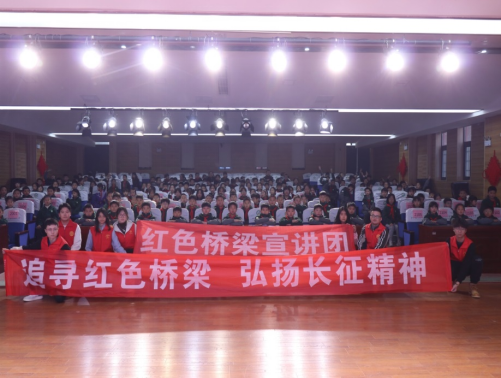 “你们知道什么是长征精神吗?”在红色桥梁宣讲会上,红桥宣讲团成员吴薇薇以“追寻红色桥梁,弘扬长征精神”为题,通过图片影像,以深情并茂的方式分别向孩子们讲述了在武阳桥和红军桥上所发生的感人故事,并带领孩子们集体朗诵《长征—为纪念长征胜利五十周年而作》,在回顾历史中,铭记革命先烈精神,体会军民鱼水之情。