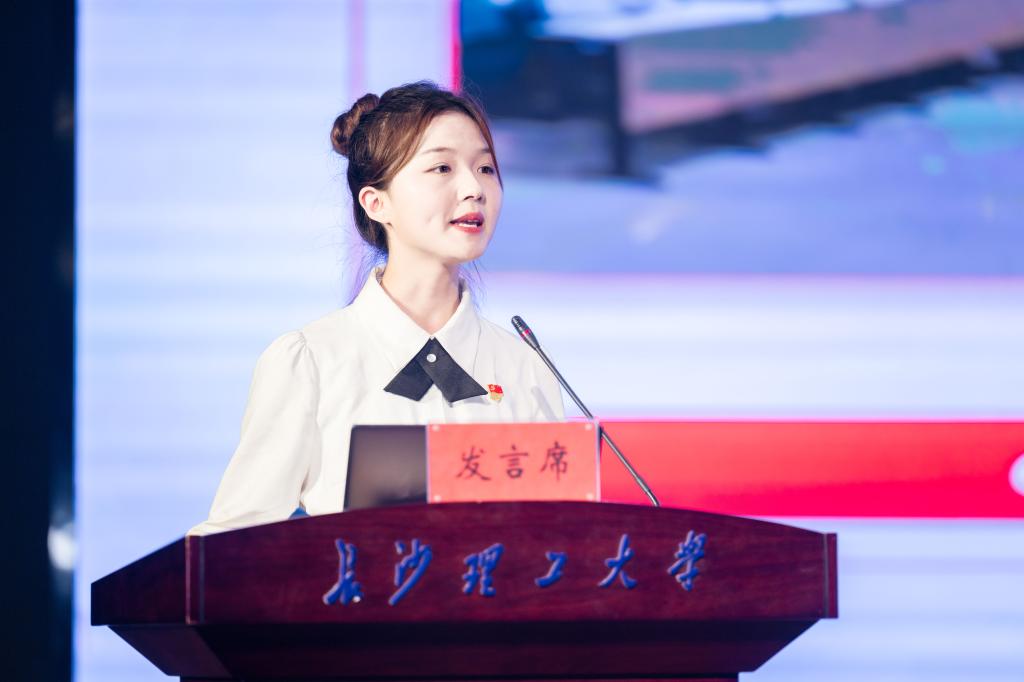 风采展上,王佩以“‘佩’梦土木,‘卓’越领航”为题进行风采展示。王佩来自桥卓2101班,她在长理求学4年,连续四年专业第一、平均绩点3.95、70门课程满绩的成绩,以推免综合第一的成绩,直博同济大学。王佩获国家奖学金、全国先进成图大赛一等奖等7项国家级荣誉,作为班长的她带领班级荣获校“示范班级体”第一名。王佩从“以钢筋的坚韧,支撑学业基石”、“以钢结构的棱角,锤炼科创锋芒”、“以桥梁的跨度,彰显实践担当”三个方面讲述了自己如何从最初“女生学土木很艰难”感到迷茫,到如今带着直博资格继续深耕桥梁工程的故事,并表示自己将继续坚守土木专业,创造更智能的检测技术,创造有温度的实践路径,更创造属于土木女生的无限可能。