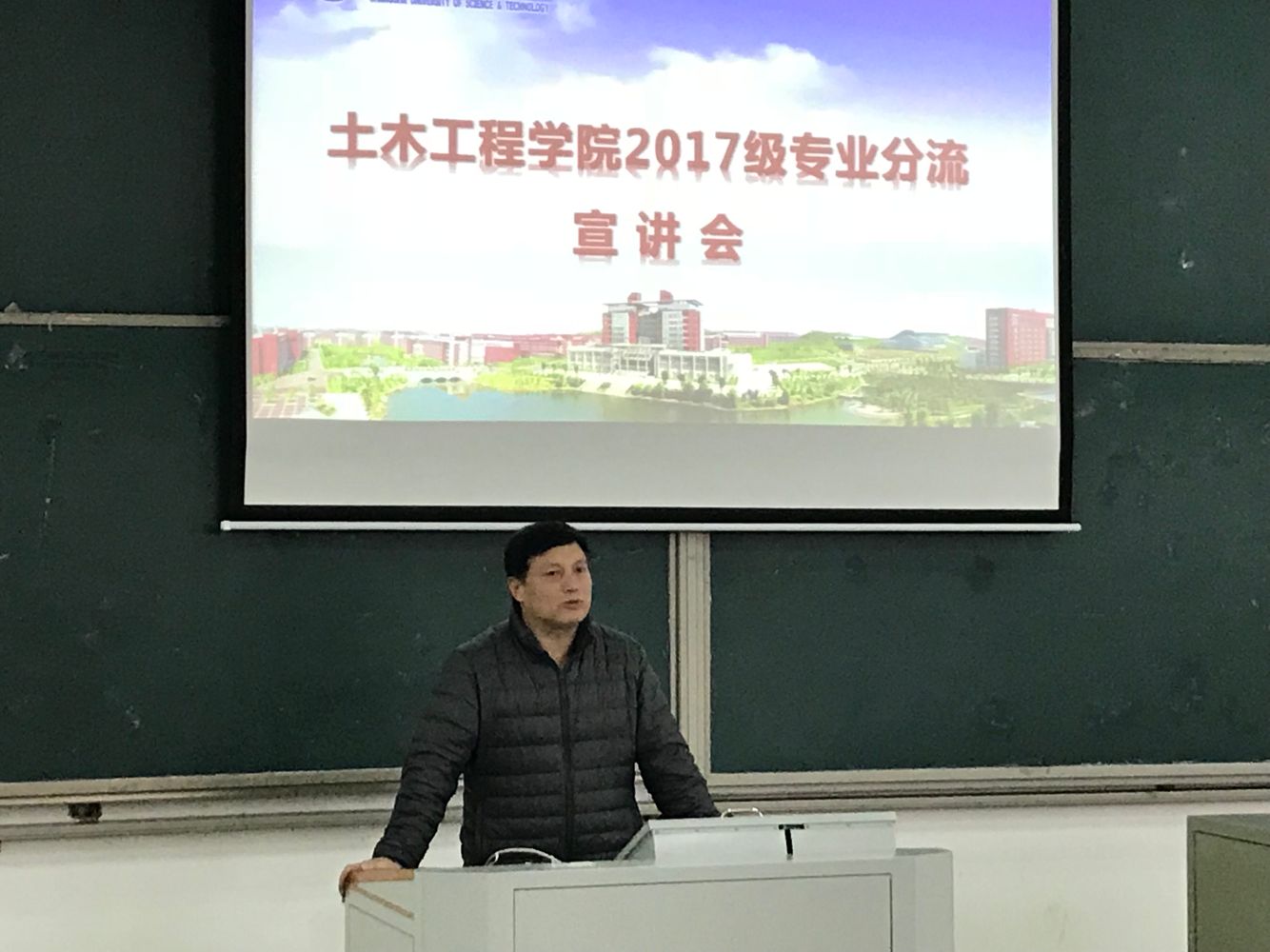 3月5日下午,土木学院在云塘校区综合教学楼B202教室和B302教室举行了土木类2017级专业分流宣讲会。院党委副书记王煜坤、副院长肖勇刚,学院各教学系专业老师陈卓异、黄阜、蒋志明、王中强、陈文胜应邀出席,2017级辅导员李小军及土木类全体本科生参加会议。
