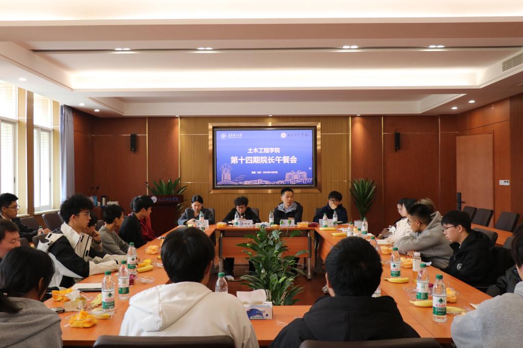午餐会现场气氛融洽,师生们促膝谈心,围绕23级学生发展、竞赛与保研等方面畅谈个人想法,并针对一些问题提出合理的意见与建议,为学校和学院的发展建言献策。会上,黄阿明指出23级学生存在竞赛积极性不高、学习自律性不高等问题,她强调学生代表应为23级同学做好表率,把全年级紧紧团结在一起,引导同学们向上向善,共建更好的23级、更好的土木工程学院。