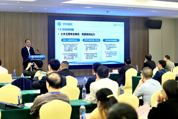 本次会议以“智建新湖南-产教融合与土建类学科高质量发展”为主题。与会代表围绕土木工程学科发展中专业建设、人才培养和产教融合等热点问题展开了探讨交流。在大会的主题报告阶段,彭建新作了“土木工程(桥隧)学科团队建设及人才培养改革”的分享报告,详细介绍了我院土木工程学科近年来在团队建设、教师发展、教学改革及人才培养方面的举措和成效。