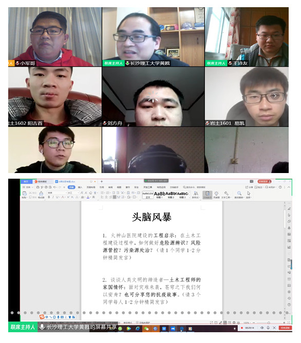 “老师,刚刚您说到地基基础时,需要在混凝土浇筑时加入速凝剂,请问跟没加相比大概是什么样一个效果呢?”在2018级的课程思政分会场,同学们的专业学习热情被充分激发,问题层出不穷。“同学们听得相当仔细。的确,混凝土正常达到设计强度大约需要28天,如掺入速凝剂,可加速混凝土的硬化和强度发展,在很短的时间内产生足够的强度。速凝剂保证了火神山医院快速施工的要求。”“南方地区桥梁长期性能提升技术”国家地方联合工程实验室副主任彭晖教授耐心的回答着同学们的疑问。在2017级分会场,鲁乃唯博士结合视频详细介绍和对比了活动板房与厢式板房这两种火神山医院主要采用的快速拼装结构的性能特点和组装技术。