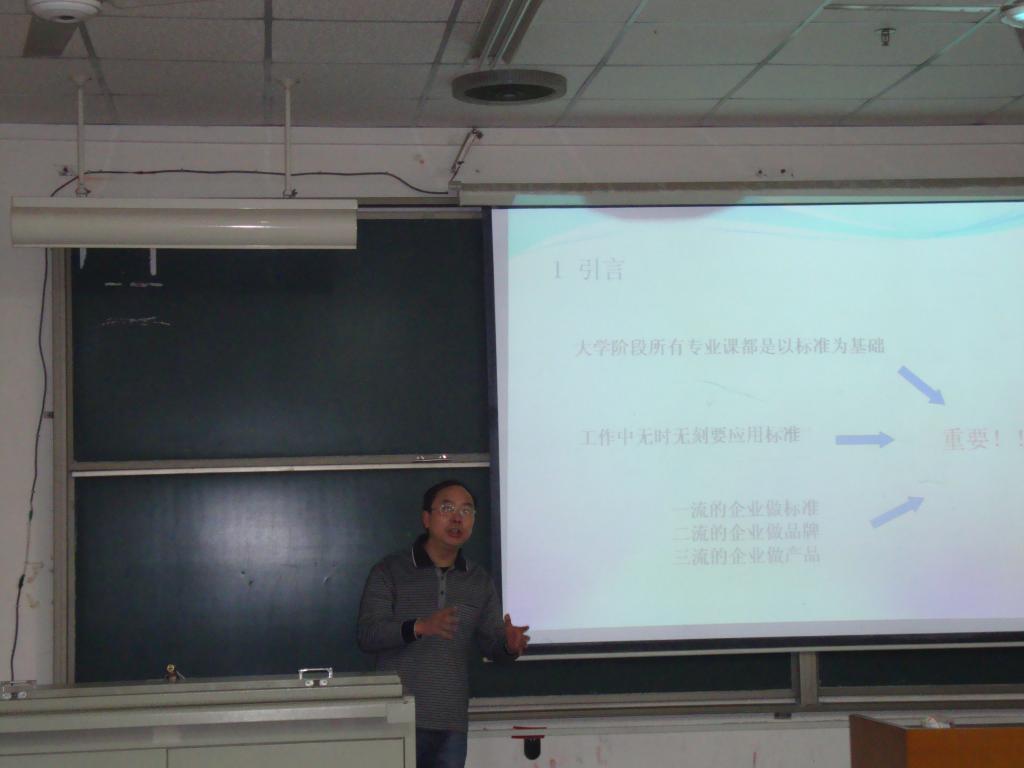 2013年3月7日上午九点,梁建国教授在金盆岭校区1教学楼A-201为即将毕业的2013届毕业生举办了《我国工程建设标准与标准化》专题讲座。建工系包括王中强主任、卜乐奇书记在内的10名专业教师,以及建筑工程2013届毕业生听取了报告。