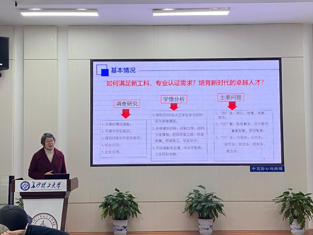 刘小燕代表《结构设计原理》课程教学团队、彭旭龙代表《工程力学》、郝海霞代表《结构力学》课程教学团队、李红利代表《桥梁工程》课程教学团队进行了课程创新成果汇报。四位教师经过了精心的准备,结合教学大纲和教学实践,对整门课程的设计思路,教学改革与创新及相关过程性支撑资料进行展示汇报。课堂讲授注重教与学的引导,采用理论讲解、案例分析等创新教学策略,合理运用启发式、混合式等教学创新方法,广泛使用图片、视频、音频等多种媒体形式,激发学生学习的主动性和参与度。课程设计注重知识交叉,采用了混合式教学、翻转课堂、研究性学习、团队学习、问题学习、案例学习等教学创新模式,精彩纷呈。