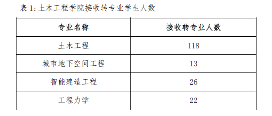 土木工程学院接收转专业人数上限为各专业2022年录取人数的25%。