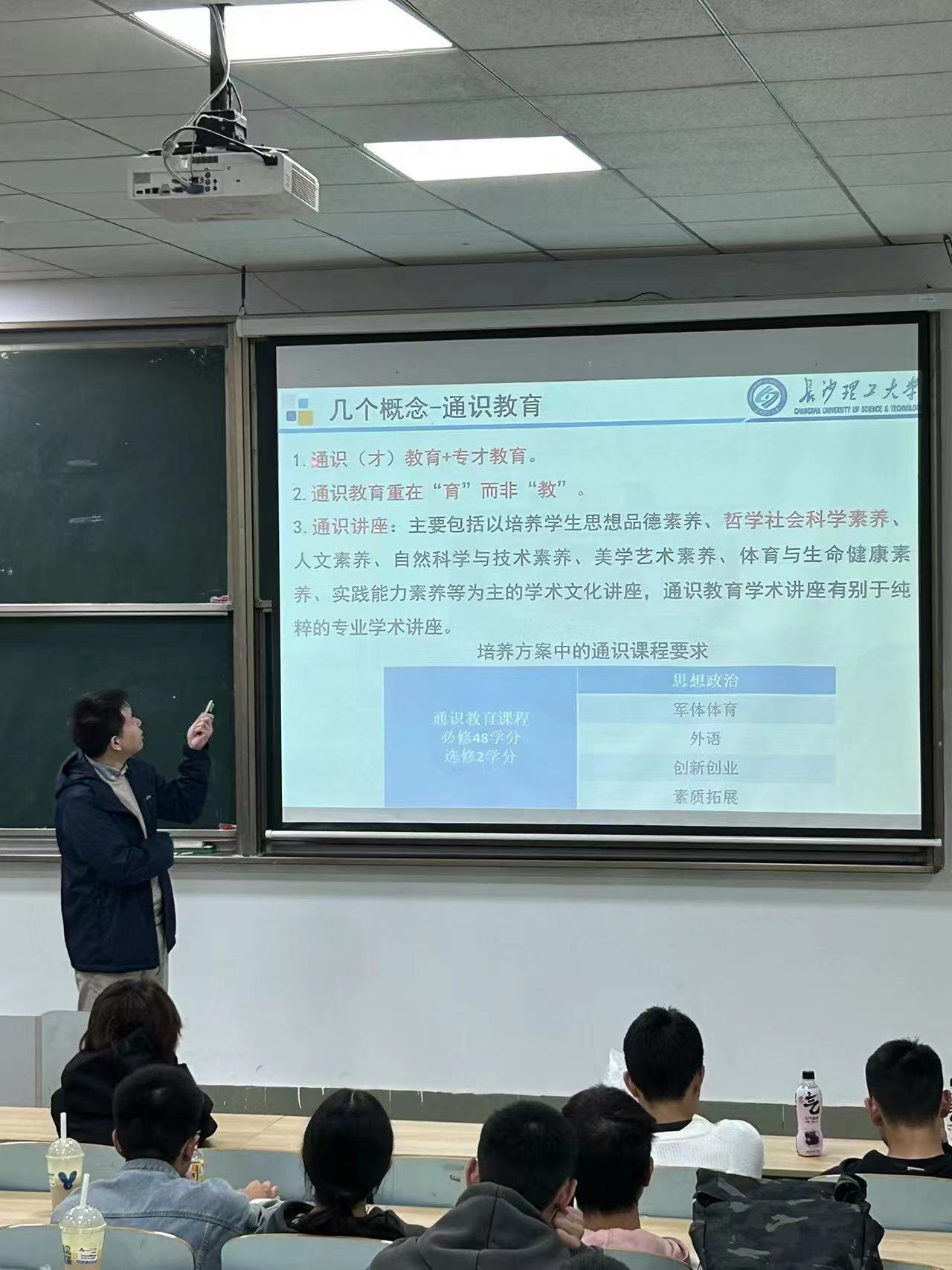 为进一步坚定学生的专业自信,提高专业认同感,11月29日,以“从智能建造专业获得的若干哲学思考”为主题的通识讲座在金盆岭校区6教108举行。土木工程学院李石清讲师主讲,2023级100多名本科生参加。