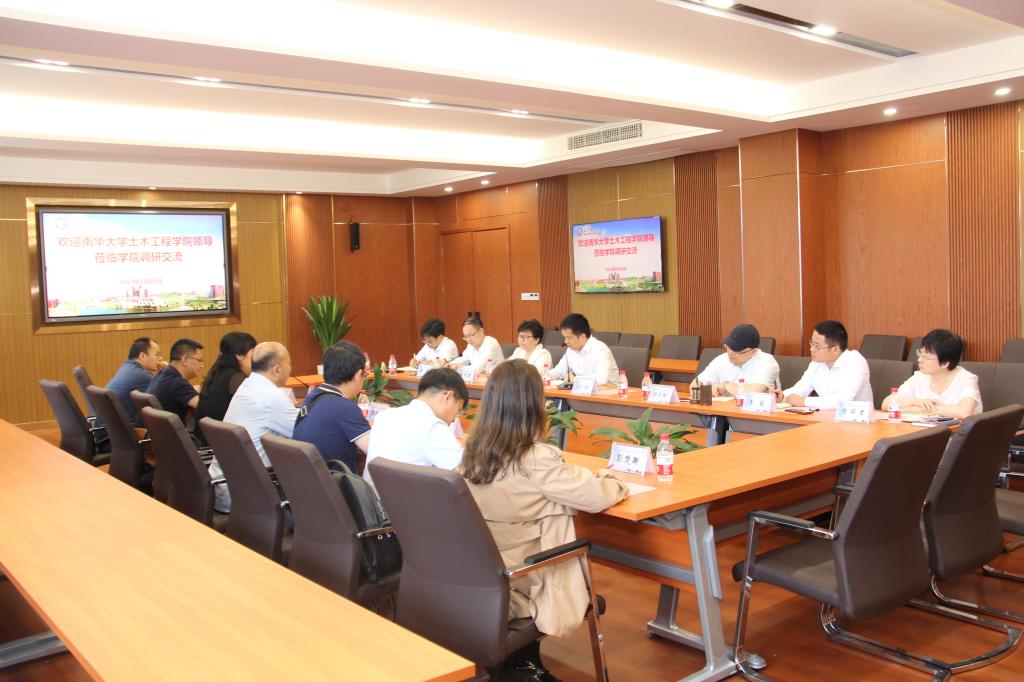6月26日,南华大学土木工程学院陈振富书记、孙冰副院长一行7人来土木工程学院进行专业认证及学科竞赛等工作调研交流活动。院党委书记江河对南华大学土木工程学院一行的到来表示热烈欢迎。土木学院副院长付果、副书记黄阿明、建工系主任李毅和陈伏彬教授、岩隧系主任黄阜、教务办主任陈丽君等参加调研。
