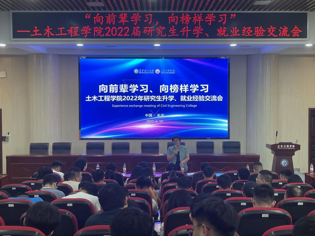 为更好地传承2022届研究生升学、就业经验,提高2023届毕业生就业质量,6月10日,土木工程学院在院学术报告厅举办“向前辈学习,向榜样学习”——2022届研究生升学、就业经验交流会。学院党委副书记黄阿明,研究生辅导员李小军及2023届研究生参加活动。专硕2020级党支部书记杨莹主持会议。