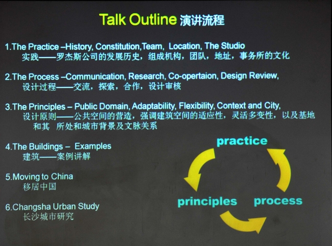 第三部分,Mason先生就设计原则给大家做了精彩的论述,指出公共空间的营造(public domain)、建筑的灵活性及适应性(flexibility and adaptability)、城市与文脉(city and context)都是设计的着眼点。建筑设计一定要考虑到人的活动和体验,一定要为使用者服务。
