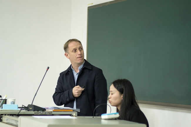 主旨报告之后,Mason先生与在场的师生们进行了交流,并认真详细的回答了同学们的提问。老师们也就自己感兴趣的问题和Mason先生做了积极的讨论。原定的20分钟的交流环节延长到了40分钟,现场气氛很热烈。