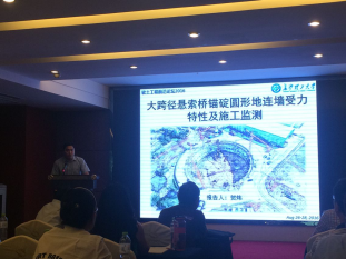 来自上海、天津、重庆、广西等地的140余名专家学者出席了本次论坛。在土木与建筑学院副院长王桂尧教授的带领下,我院周德泉教授、张军教授、柳厚祥教授、陈文胜教授、贺炜副教授、陈洁金博士、曾铃博士、尹平保博士以及部分岩土工程专业研究生参加了此次论坛。贺炜副教授代表必赢官网做了“大跨径悬索桥锚碇圆形地连墙受力特性及施工监测”的专题报告。