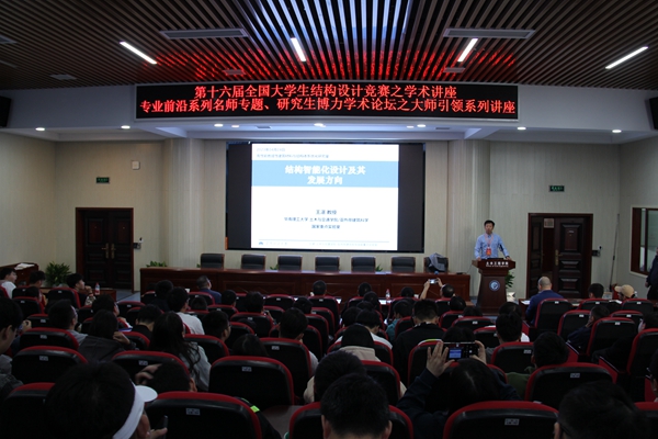 20231029日,“'创新与实践'专家说”第十六届全国大学生结构设计竞赛之系列学术讲座(五)暨专业前沿系列名师专题、研究生博力学术论坛之大师引领系列讲座在云塘校区工科二号楼举行。华南理工大学王湛教授应邀做了题为“结构智能化设计及其发展方向”的学术报告。报告由土木工程学院副院长陈伏彬教授主持,彭建新教授、张振浩教授、贺君教授及200余名教师、研究生和本科生聆听了报告。