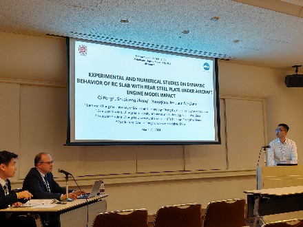 我院彭琦博士参加了此次会议,作了题为“Experimental and numerical studies on dynamic behavior of RC slab with rear steel plate under aircraft engine model impact”的学术报告,并与参会学者进行了讨论。