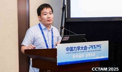 我院9位力学领域教师参加了本次会议,其中在材料与结构之力学性能测试分会场,陈辉副教授做了题为“增材制造金属拉伸性能及残余应力的原位压痕表征方法”的分会报告;在多体动力学与控制专题研讨会场,马佳副教授做了“基于自优化神经网络的弹炮接触碰撞动力学建模研究”的专题报告;在固体变形与本构理论专题研讨会场,徐艺伟老师做了“介电液晶弹性体各向异性力-电耦合本构行为”的专题报告;在智能材料与超材料力学专题研讨会场,赖安迪老师做了“PT对称板的奇异点与扰动动力响应”的专题报告;在实验力学新方法及前沿应用专题研讨会场,董帅副教授做了“基于深度学习的自标定三维数字图像相关方法”的专题报告;在多相流体力学专题研讨会场,王响军老师和石理新老师分别做了“一种定量表征粒子局部富集现象的新型方法——拟引力法”与“边界约束控制着剪切增稠悬浮液中动力学模式的形成”的专题报告。