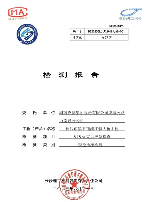 2025年8月18日18时43分,G0401长沙绕城高速西南段K51黑石铺湘江特大桥桥下施工区域,因防尘土工布燃烧引发火情。该桥2004年4月建成通车,至今已安全运营21年。火情发生后,桥梁安全成为公众关注的焦点,桥梁管理单位第一时间委托长沙理工检测咨询有限责任公司对桥梁进行安全检测。437必赢会员中心土木与环境工程学院建工系王中强老师主导完成了对黑石铺湘江特大桥主桥的火情现场调查、吊杆索力、拱肋变形及桥面线形测试,出具了《长沙市黑石铺湘江特大桥主桥8·18火灾后应急检查报告》。