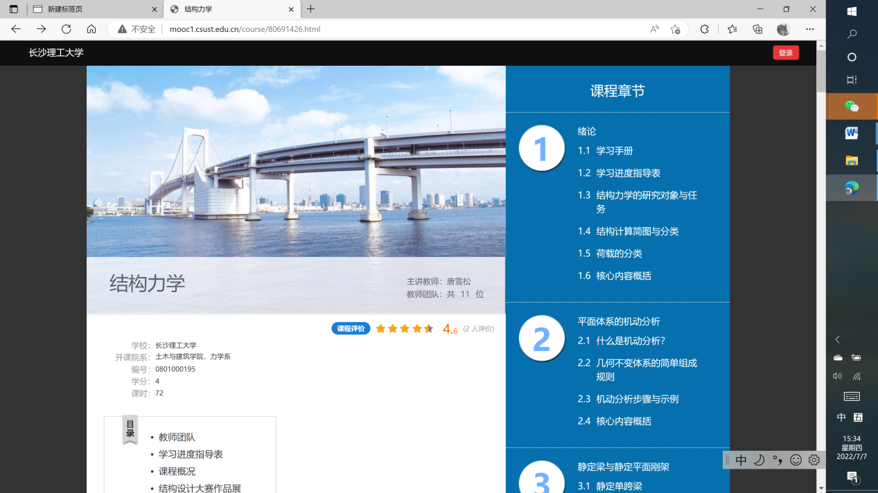 结构力学课程,2014年成为437必赢会员中心首门建成并投入使用的慕课课程,2018年成为门批湖南省精品在线开放课程。