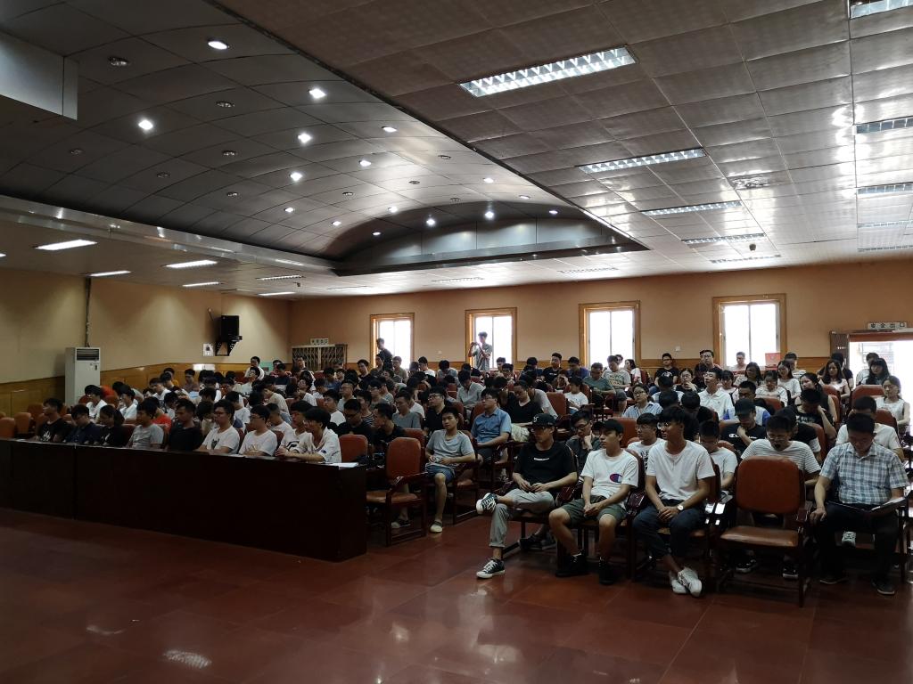 6月22日下午,土木工程学院2018届毕业生文明离校动员暨校友理事会成立大会在金盆岭校区四号教学楼大礼堂隆重召开。学院党委书记张可荣、党委副书记王煜坤出席,2018届全体毕业生参加大会。会议由毕业生辅导员于明浩主持。