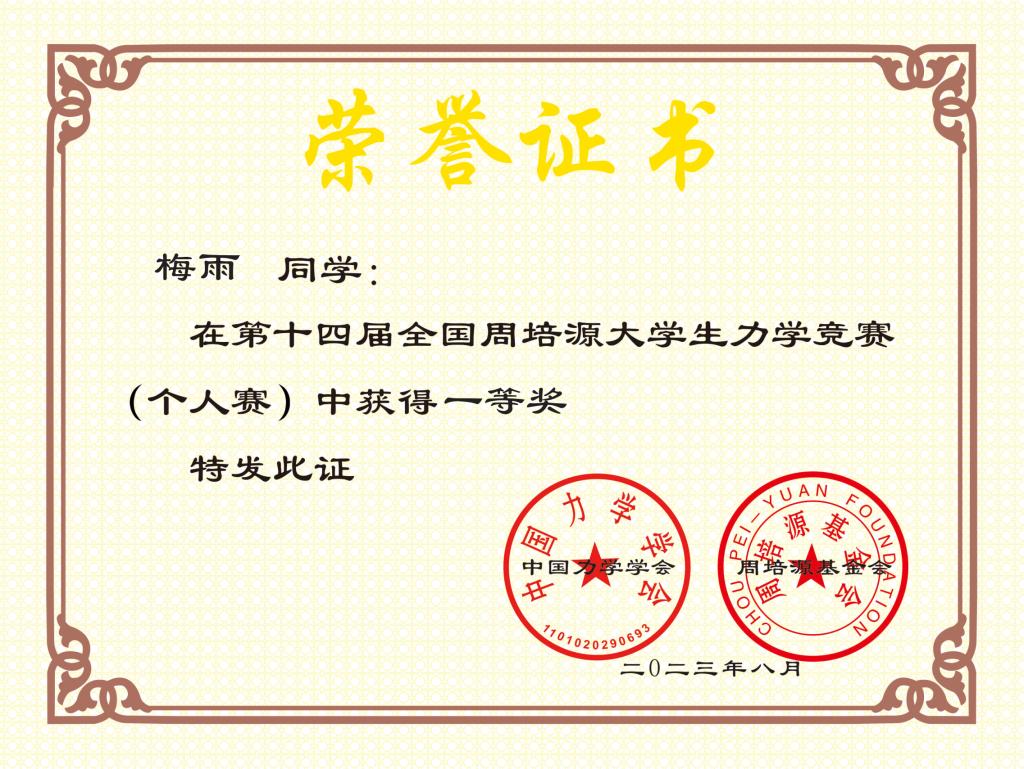 赛事简介:全国周培源大学生力学竞赛是受教育部高等教育司委托(教高司函[2006]140号)、由教育部高等学校力学教学指导委员会基础课程教学指导分委员会、中国力学学会和周培源基金会共同主办的全国性大学生学科竞赛。竞赛的宗旨是培养人才、服务教学、促进高等学校力学基础课程的改革与建设。增进青年学生学习力学的兴趣,培养分析、解决实际问题的能力,发现力学创新人才,为青年学子提供一个展示基础知识和思维能力的舞台。