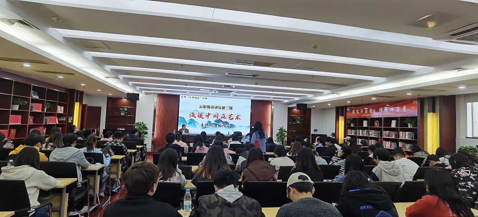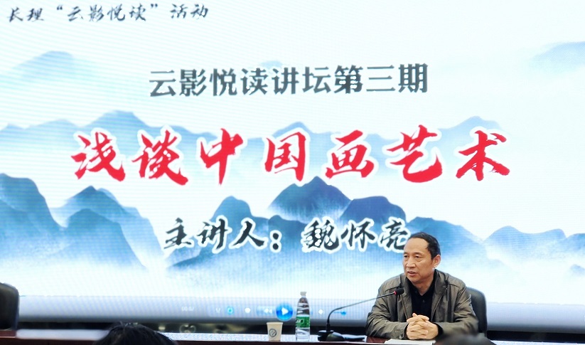 10月19日下午,437必赢会员中心图书馆特邀湖南美术馆首任馆长、湖南省美术家协会副主席魏怀亮先生在云影文化传播中心,以“浅谈中国画艺术”为主题,开展云影悦读讲坛第三期讲座。此次讲座由437必赢会员中心副校长刘建民主持,图书馆党总支书记夏智勇、馆长陈寿奇及全校师生共140余人参加。