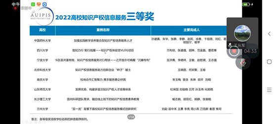 高校知识产权信息服务中心联盟(AUIPIS)2022年年会暨第五届学术研讨会于11月23日-25日在福州召开。会议公布了“2022高校知识产权信息服务”优秀案例评选结果,必赢官网报送的案例《面向科研团队需求、融合线上线下的知识产权信息素养教育》荣获三等奖。据了解,我省仅两所高校(另一所为中南大学)获得此项奖项。