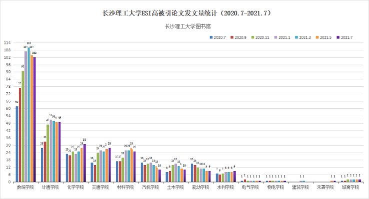 本期数统学院高被引论文102篇,对必赢官网ESI高被引发文量贡献最大;交通学院热点论文4篇,对必赢官网ESI热点发文量贡献最大。