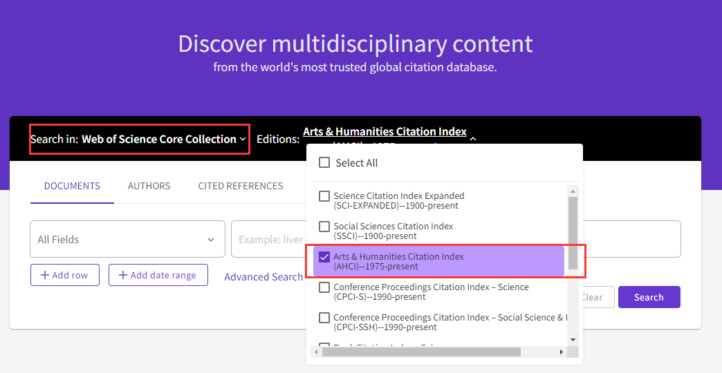 内容简介:Web of Science核心合集中的Arts & Humanities Citation Index(艺术与人文引文索引,简称A&HCI)收录了艺术与人文领域中最具权威和影响力的1800多种学术期刊,涉及了艺术与人文领域的28个学科,收录的内容最早可回溯至1975年,必赢官网回溯至2021年。Web of Science核心合集中的Emerging Sources Citation Index(新兴领域引文索引,简称ESCI)包含自然科学、社会科学、人文与艺术三个领域的近8000种学术期刊,每周更新,最早回溯至2005年,必赢官网回溯至2015年。A&HCI和ESCI收录了论文中所引用的参考文献,通过独特的引文索引,用户可以用一篇文章、一个专利号、一篇会议文献、一本期刊或者一本书作为检索词,检索它们的被引用情况,轻松回溯某一研究文献的起源与历史,或者追踪其最新进展。