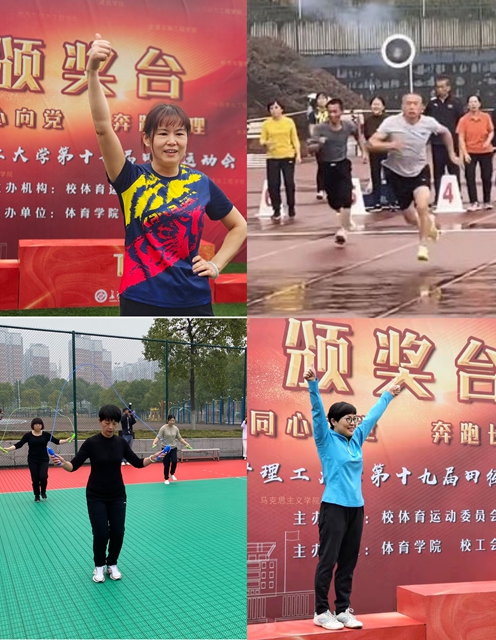 为做好运动会参赛工作,馆分工会积极动员,认真组织。在比赛现场,参赛队员不畏强手、勇于拼搏。田赛场地上,许建勋、曾红春获得女乙立定跳远第1、3名;曾红春、龚程行分获女乙铅球第2、4名;李朝辉获男乙铅球第4名;杨荣、赵丽萍分获女乙飞盘第4、5名;陈茂华、李湘宏获得飞盘男子甲乙组第5名。径赛跑道上,许建勋、龚程行、宁雪菠分获60米第1、5、7名。在跳绳团体赛中,杨荣、叶浩、孙静、张健、顾湘、李东团结一心,战胜强手,勇夺第一,杨荣夺得个人跳绳王桂冠;喻志娟、胡建宇、顾湘等在趣味50米10人迎面接力中,顶住压力,获得团体第三名。在激烈纷呈的角逐中,易奇为、李小洪、周思妤、易琰华、胡凤莲、章玉兰等参赛队员不畏强手,积极参赛,表现出良好的体育竞赛道德精神,取得了不俗成绩。在比赛中,我馆参赛队员们以顽强的精神和毅力赛出了信心、赛出了水平、赛出了图书馆人的拼搏奋进的风采。