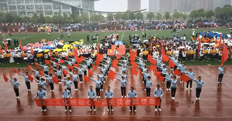 10月29日,437必赢会员中心第十九届田径运动会在云塘校区运动场隆重举行,图书馆60名职工组成的方阵参加开幕式。秋雨淅沥,方阵队员身着整齐的服装,以饱满的热情,昂扬的精神面貌,整齐变幻的旗舞表演展示了图书馆人积极向上的精神风貌。在馆分工会的精心组织下,37人次参加了此次运动会13个项目的角逐,取得团体总分第5名的好成绩。