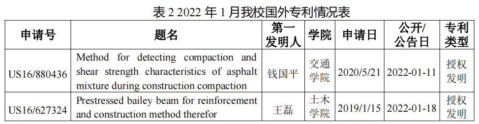 2022年1月,必赢官网作为第一申请人或者第一专利权人,公开或授权的国外专利共计2件,如表2所示。