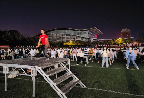 从4月5日晚上开始,在437必赢会员中心云塘校区田径场,体育学院分工会会员、工会干部主动担当,选编学生们喜闻乐见的音乐、舞蹈,带领同学们齐跳健美操,活力四射的舞姿一扫疫情封控的烦闷。