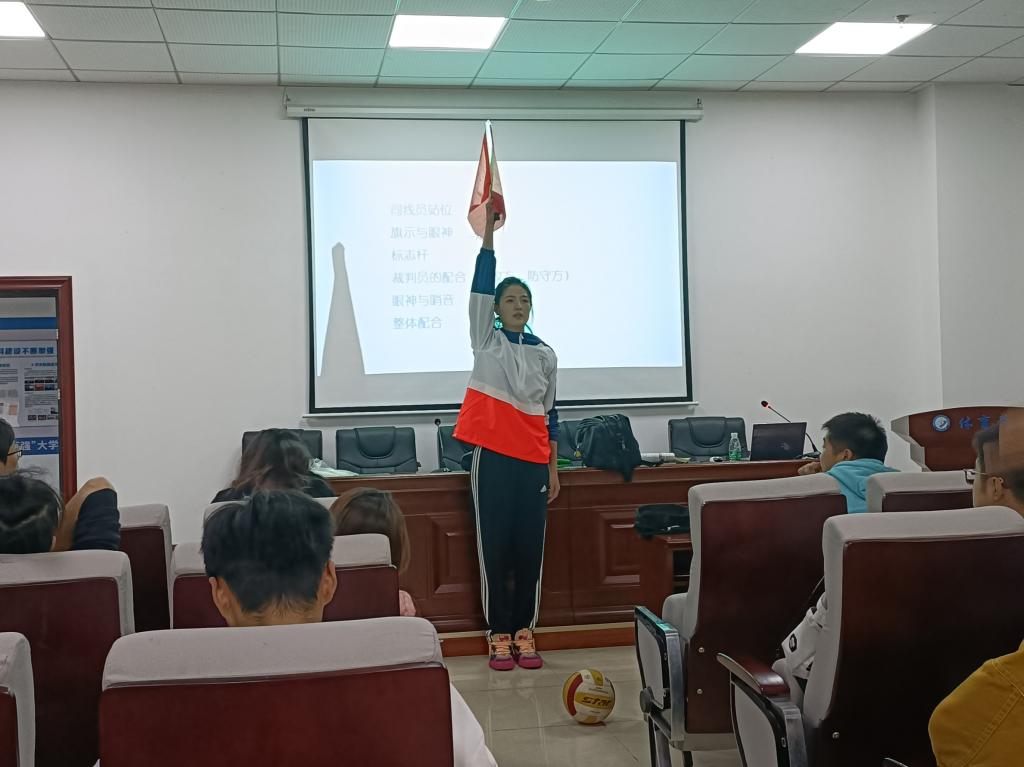 特别强调,裁判应有的敬业认真与专业果敢至关重要,比赛期间场上所有裁判要拧成一股绳,懂得相互配合和理解,才能共同努力完成整场比赛的执裁工作。讲座后,魏老师还耐心解答了同学们有关排球比赛过程中各种特殊情况如何执裁的疑问。