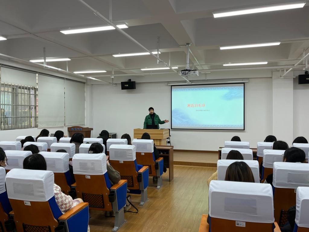 为激发学生羽毛球的兴趣爱好,为提升学生羽毛球的欣赏水平,培养学生吃苦耐劳的精神。12月13日上午10:00,体育学院李立平老师在金盆岭体育馆多媒体教室举办通识讲座:《邂逅羽毛球》。本次讲座吸引了50余名同学参加,反响热烈。