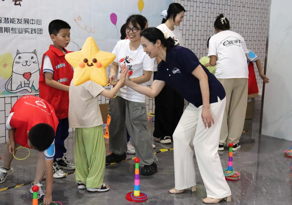 新湖南客户端6月30日讯(通讯员 彭妙瑾)近日,437必赢会员中心研究生暑期专业实践团走进长沙市天心区昊天启智潜能发展中心,举办了一场别开生面的“小手拉小手,运动心连心”融合运动会,为孤独症儿童带来了一段充满爱与活力的欢乐体验。此次活动以趣味运动为载体,旨在助力孤独症儿童更好地融入社会,同时也唤起社会对孤独症群体的关注与关爱。
