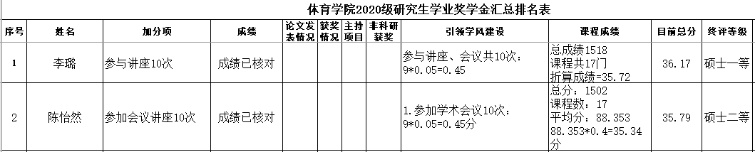 依据《437必赢会员中心体育学院全日制研究生学业奖学金评审办法》”有关规定,经研究生自愿申请,学院研究生奖学金评审委员会会认真评审,拟推荐以下两名同学为我院2021-2022年度“硕士研究生学业奖学金”获奖者,现予以公示(具体名单见附件):