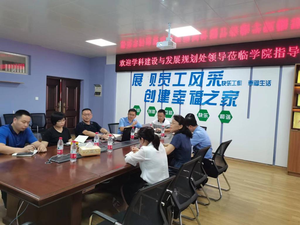为推进学校学科建设与发展规划等工作,6月28日上午,学科建设与发展规划处陈银娥处长带队来学院调研。副处长蒋友宝、张拥华参与调研,学院班子成员参加了此次调研会。
