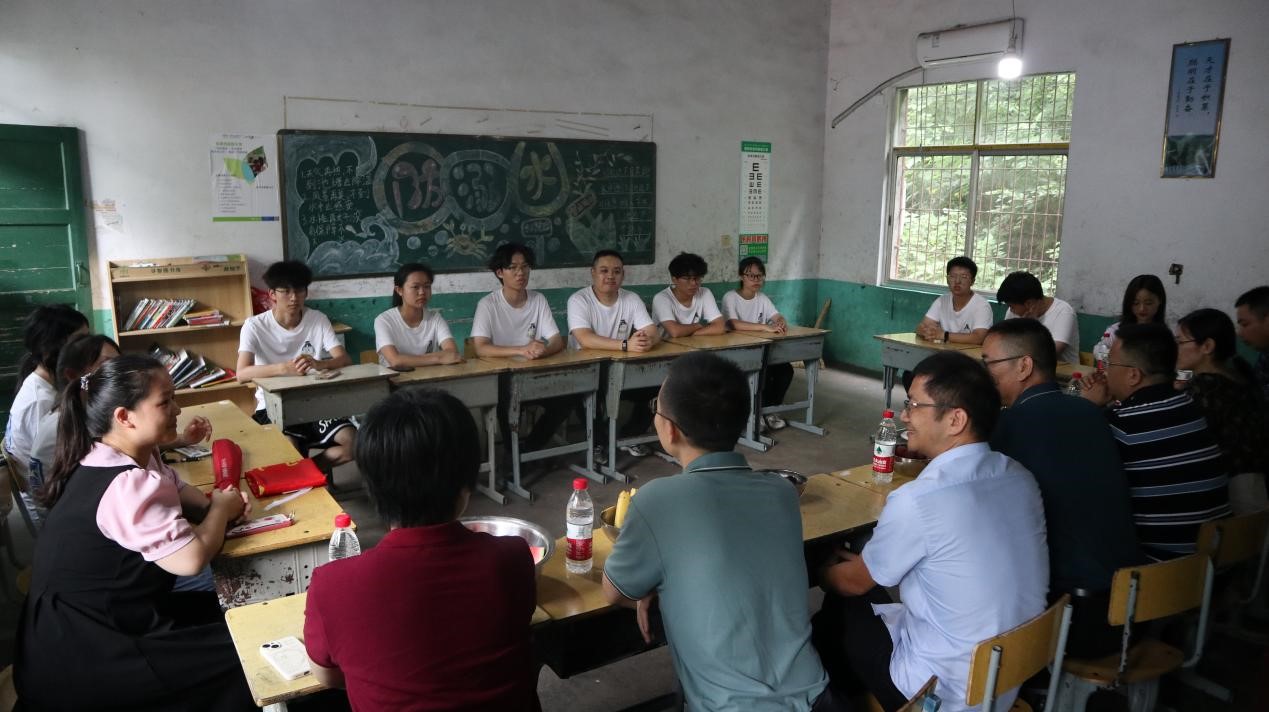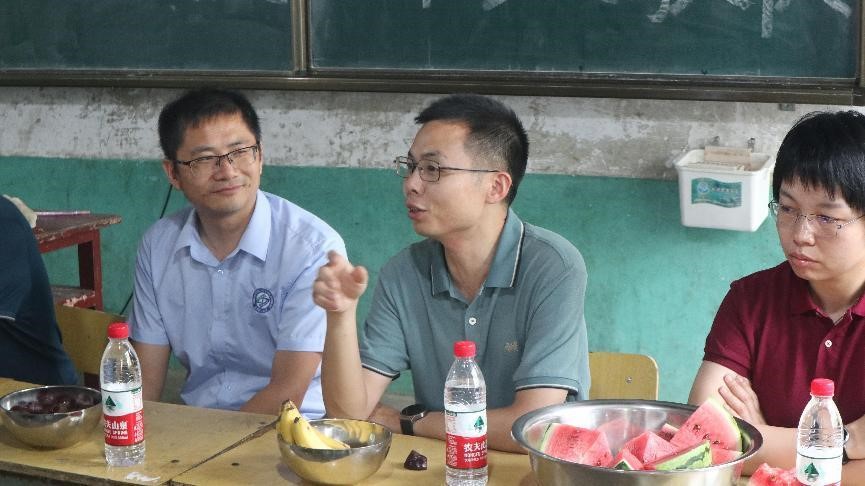 2023年7月8日,物电学院党委书记张国强一行来到华容县继林学校看望慰问学院暑期“三下乡”社会实践团队师生,调研指导大学生暑期社会实践工作,与学生实践团队进行了简短而深入的座谈,并送上防暑解暑慰问品。