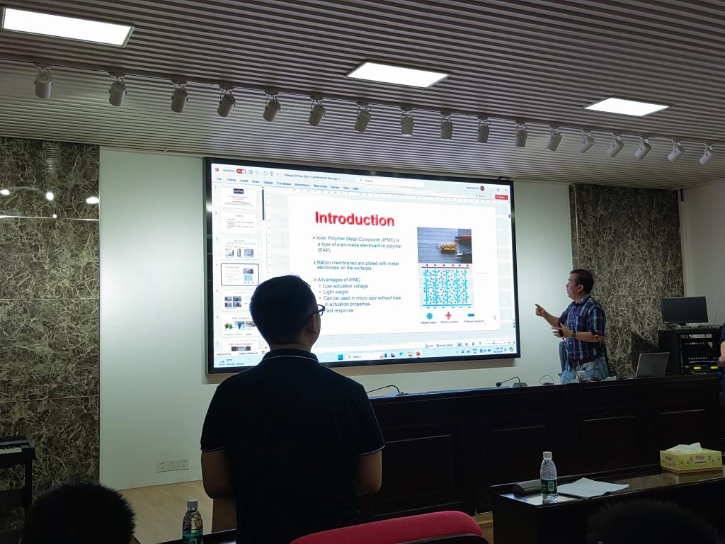 报告即将结束,师生踊跃提问,LIM教授也一一耐心给予专业解答,最后报告会在热烈的掌声中圆满结束。此次精彩的报告,不仅帮助同学们对新型离子聚合物-金属复合(IPMC)材料的工作原理及其应用有了更深刻的认识,同时也为学院的科研工作提供了良好的学习氛围。