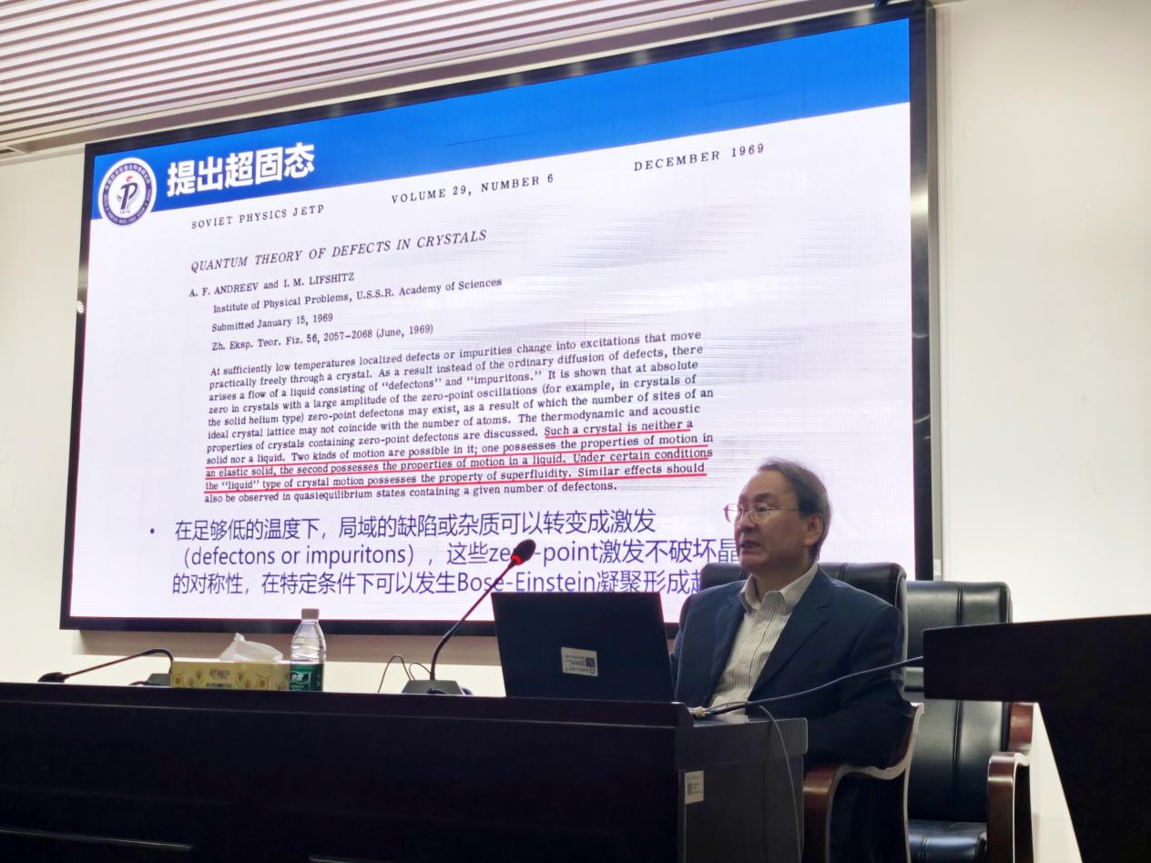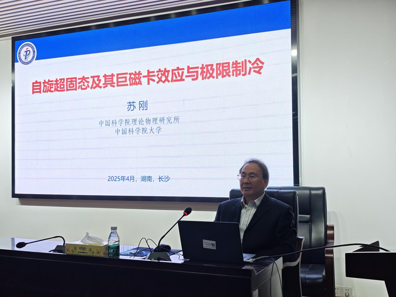 2025年4月26日下午,中国科学院理论物理研究所苏刚教授应邀来必赢官网交流指导,在理科楼B413会议室作了题为《自旋超固态及其巨磁卡效应与极限制冷》的学术报告。我院六七十余名师生积极参加了此次学术报告会,会议由邓科教授主持。