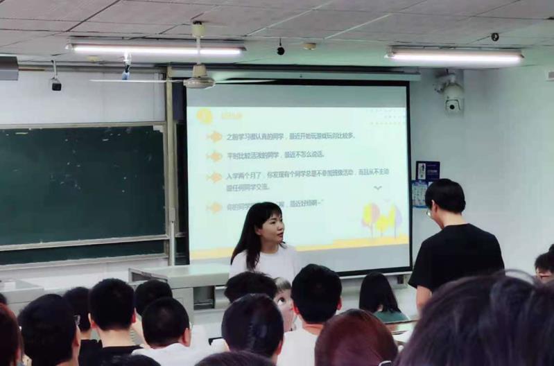 5月11日下午2:30,物电学院2020级朋辈第三次培训会议——朋辈互助技巧专题培训在金盆岭校区12教115举行。本次培训由数统学院心理辅导员杨爽老师主讲,2020级全体心理部成员、心理委员和寝室长参加了此次培训。