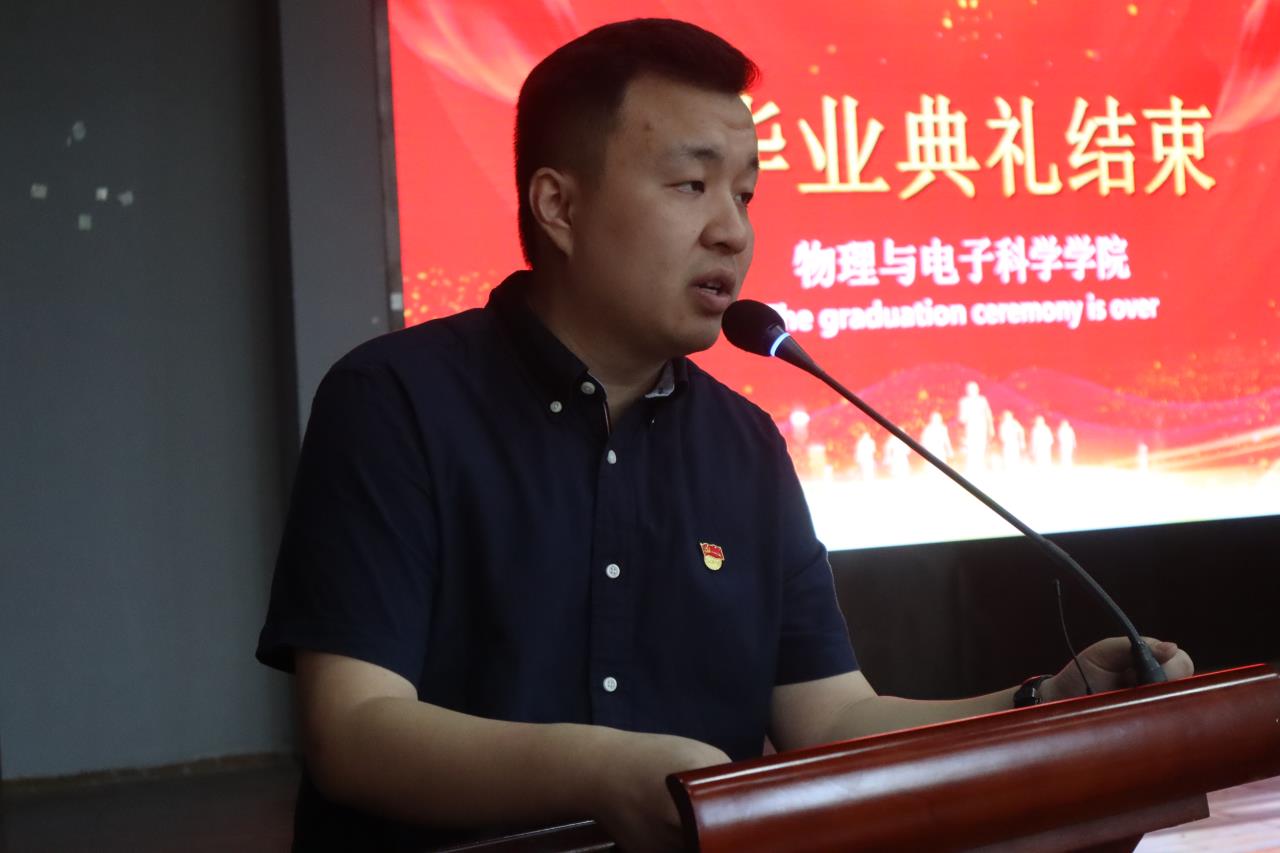 6月14日下午2点30分,物电学院2022届毕业典礼在437必赢会员中心云塘校区科技报告厅举行,参加本次典礼的有全体院领导、毕业班班主任、导师代表及全体本科生、研究生毕业生,典礼由毕业生辅导员王中兴主持。