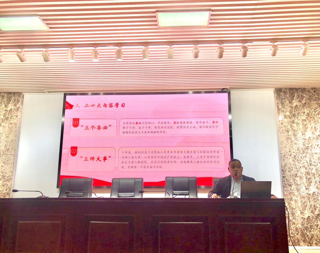 首先,支部书记赵俊程老师领学党的二十大报告相关内容。着重强调了党员同志务必不忘初心、牢记使命,务必谦虚谨慎、艰苦奋斗,务必敢于斗争、善于斗争。支部成员积极学习并开展了研讨交流,加深了大家对党的二十大报告内容的理解。