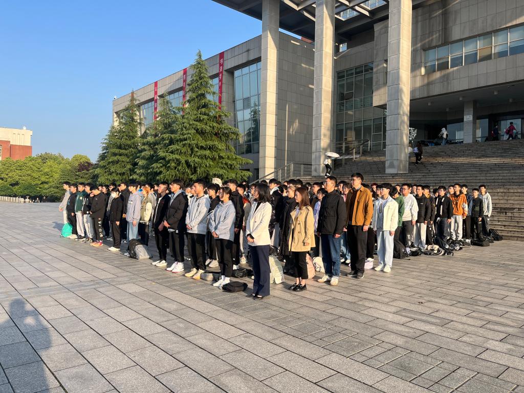4月26日,物理与电子科学学院于云塘校区图书馆前坪举行升旗仪式,院党委副书记宋国宁、各年级辅导员及22级人工智能和物理学专业全体同学参加本次升旗仪式。