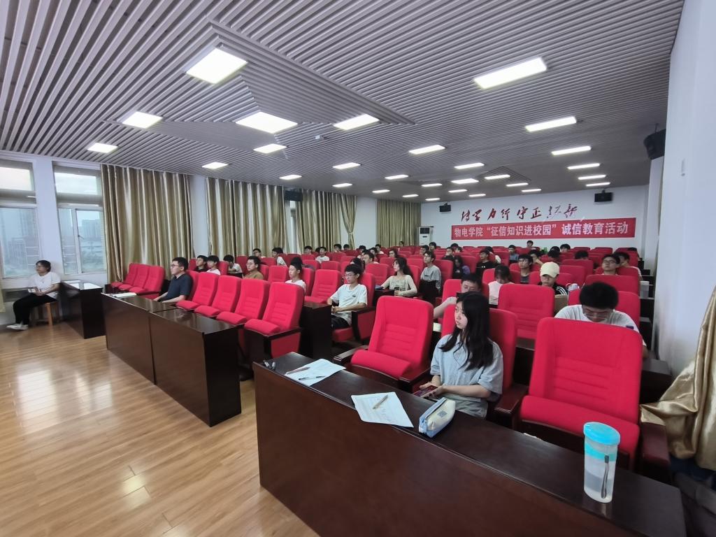 为加强学生的诚信教育、感恩教育和励志教育,提高学生的征信意识、风险意识和感恩意识,增强社会责任感,5月18日,物理与电子科学学院“征信知识进校园”诚信教育主题活动在理科楼B413顺利进行。本次活动由倪锦玲同学主持,物电学院资助辅导员姚巍老师出席本次活动,物电学院家困生参加本次活动。