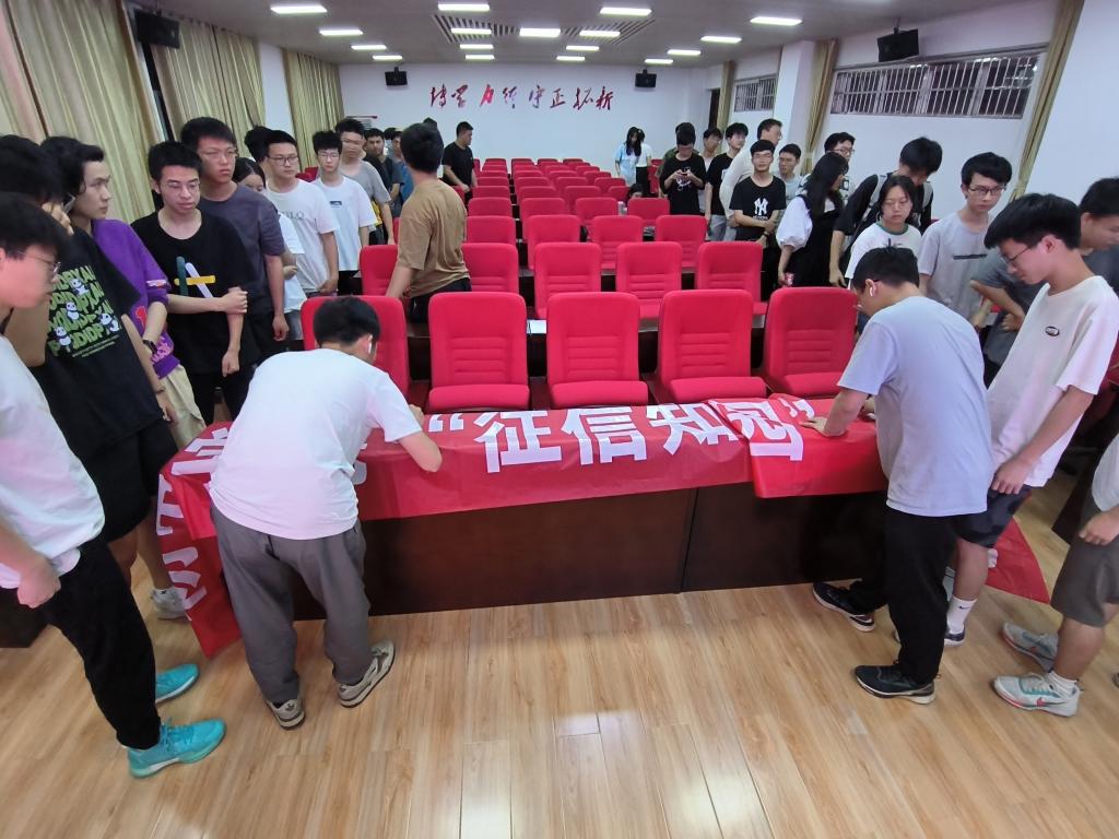 在宣讲会的最后,参会的同学们在“征信知识入校园“的横幅上签字,以表在未来做一位讲诚信、懂感恩之青年的决心。
