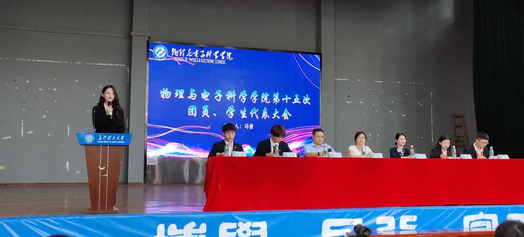 6月12日下午14点30分,物电学院在创新创业园科技报告厅召开了物理与电子科学学院第十五次团员、学生代表大会。院党委副书记宋国宁、校团委老师刘仁、院团委书记赵俊程老师出席本次会议,各年级团员代表、学生代表和学生会成员代表共两百多人参会。大会由物电学院第十四届团委副书记冯茜主持。