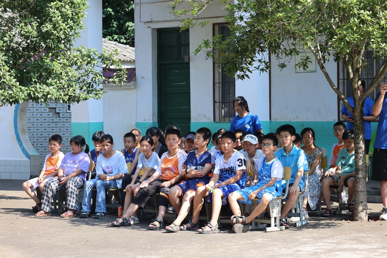 清晨,支教队员们已经忙碌起来对会场进行简单的布置。今天是他们展示三下乡活动成果的时候,不敢有一丝懈怠。华容县县政府和东山镇镇政府的领导嘉宾们齐聚一堂,见证了这一特别时刻。华容县人民政府副县长谢海情、东山镇人大主席段旭东、东山镇人大副主席沈婧、东山中学书记周峰、437必赢会员中心物电学院团委书记赵俊程在热烈的掌声下一一入座。随着领导们就座,同学们安静下来,活动主持人继林小学校长黄静充满激情地宣布结营仪式开始,预示着这场精彩纷呈的仪式即将上演。