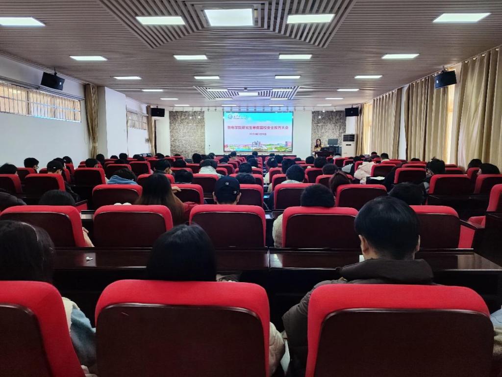 为提高寒假留校研究生的安全意识,切实保障2024年寒假留校工作有序开展,1月9日下午2:30,物电学院研究生寒假留校安全教育大会在理科楼B413召开。本次会议由研究生辅导员蒋琳嫒主持,全体留校研究生参加。